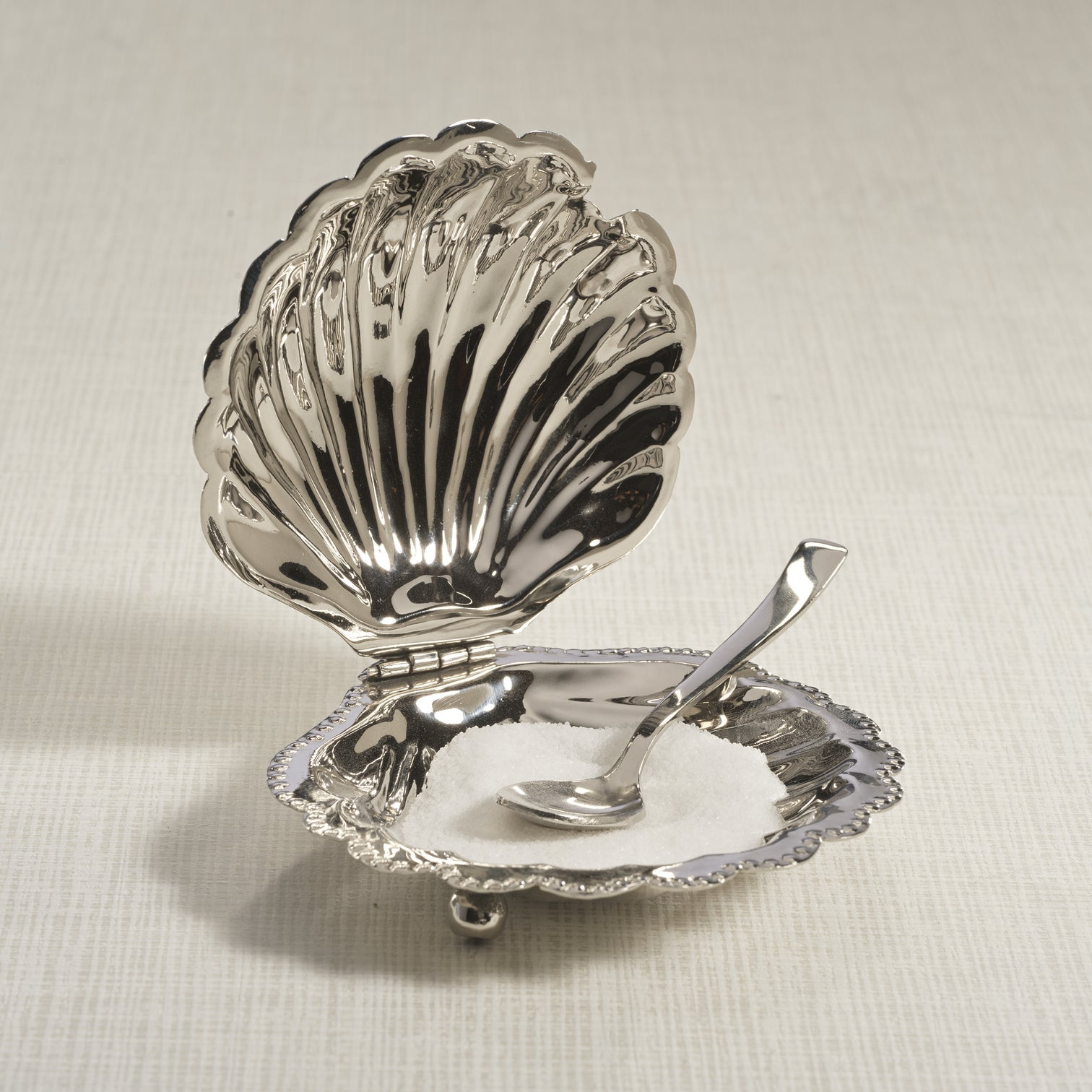 Cap Ferrat Fan Shell Lidded Bowl with Spoon – Polished Nickel