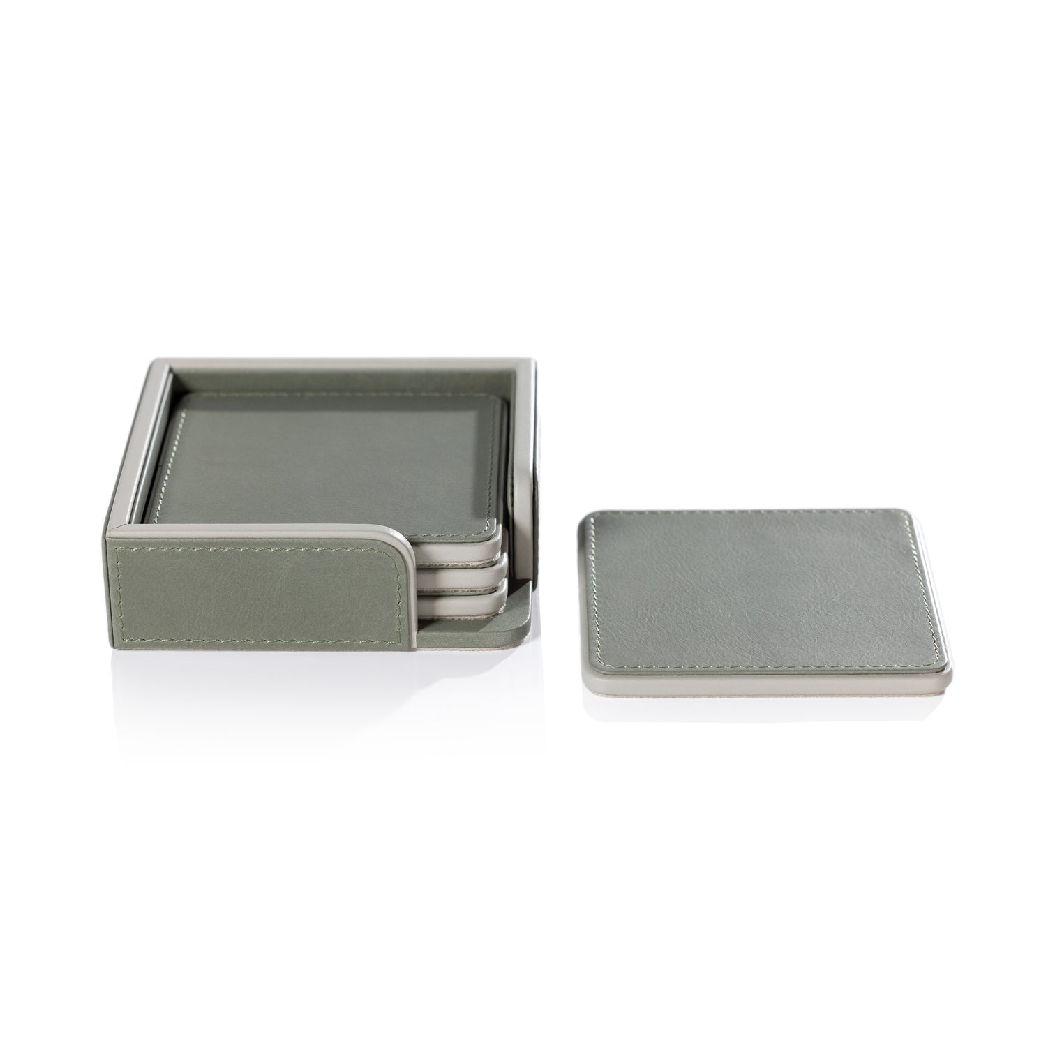 Nappa Leather Coasters – Set of 4 – Sage & Gray