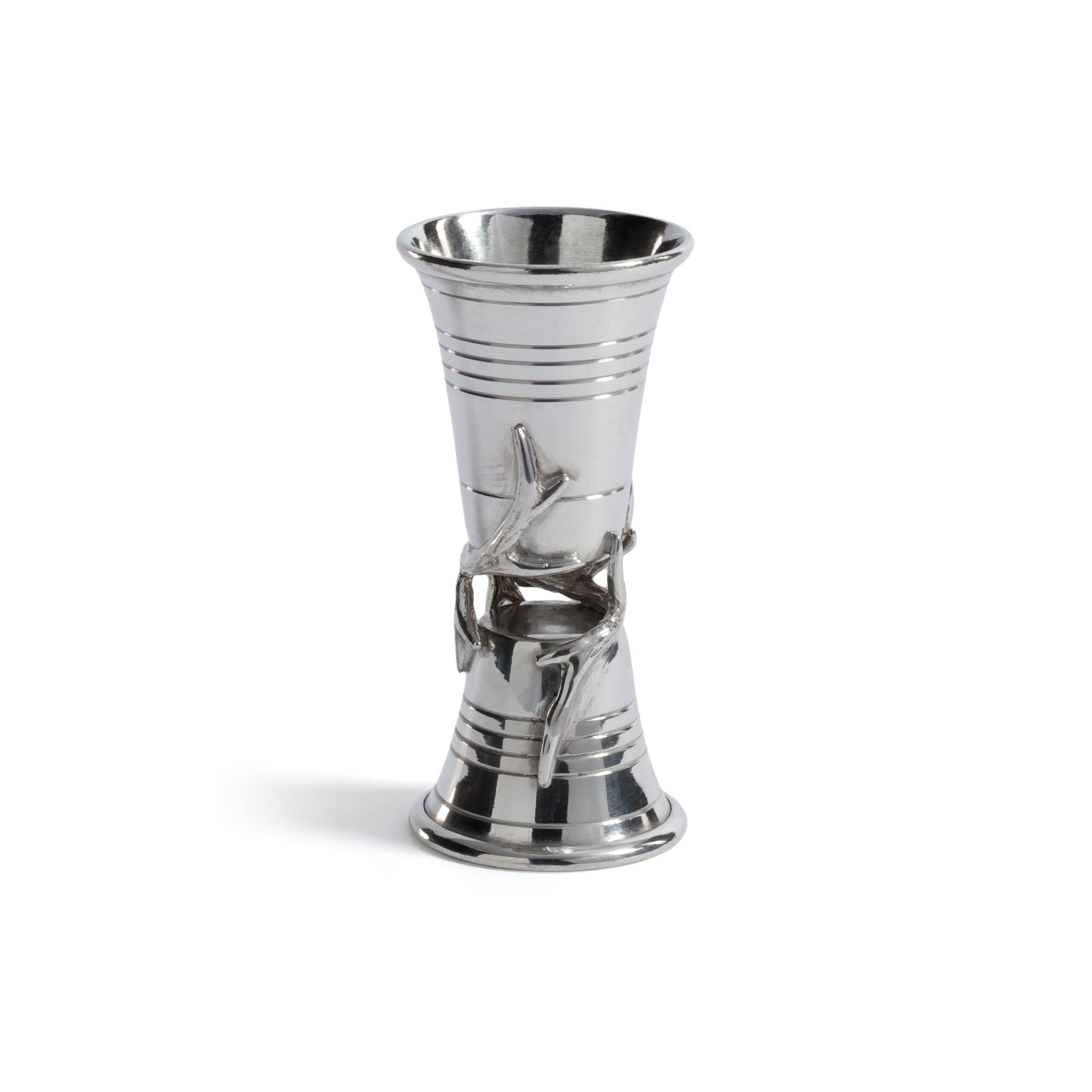 The St. Anton Pewter Jigger embodies mountain refinement in barware form. Handcrafted with a polished pewter finish and accented by sculpted antlers, this elegant double-sided jigger is a nod to alpine tradition and modern design. Perfect for precise cocktail measuring or as a decorative piece on your bar cart, it pairs beautifully with the St. Anton Pitcher and St. Moritz Wine Cooler for a cohesive, lodge-inspired presentation.